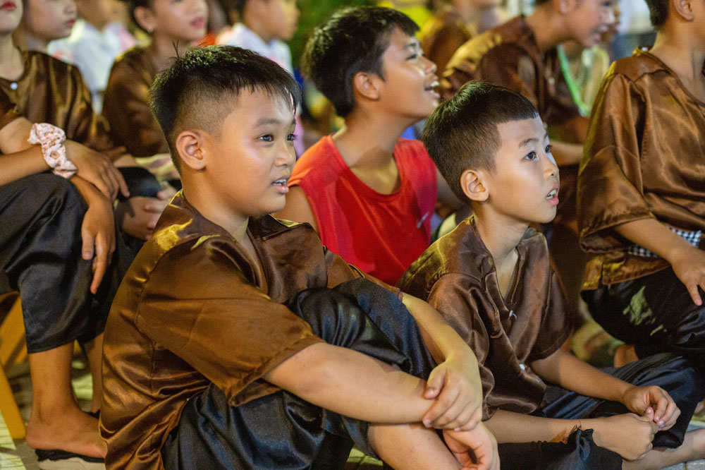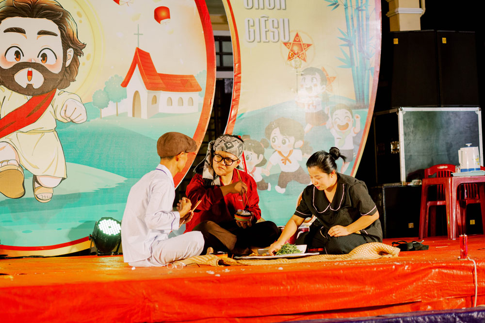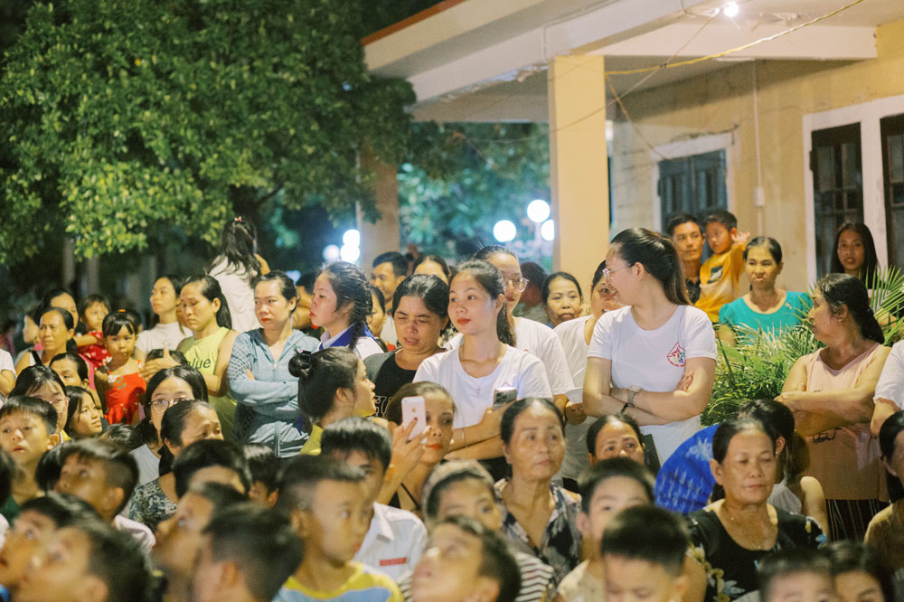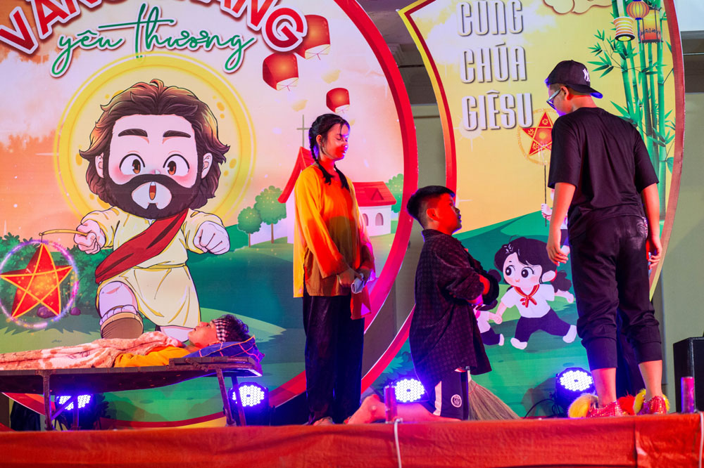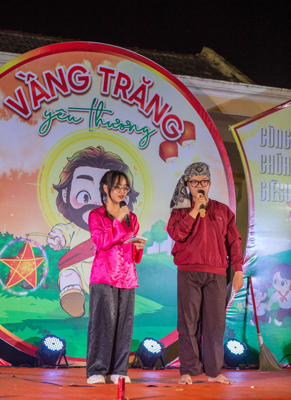 Dưới vầng trăng sáng, hòa với những âm thanh ánh sáng muôn màu rực rỡ, các em thiếu nhi và phụ huynh được thưởng lãm những tiết mục văn nghệ do chính những diễn viên “cây nhà lá vườn” biểu diễn đầy thú vị. Mỗi tiết mục thể hiện một tài năng tiềm ẩn nơi thiếu nhi cùng sự chu đáo tận tình của các anh chị Huynh trưởng trong quá trình tập luyện cho các em.